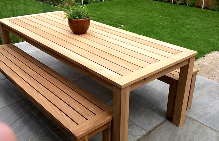 Always great seeing our furniture in customer gardens. We were sent these shots of a just-unwrapped Antibes garden dining table and matching benches from a customer who had just completed landscaping. Really like the black wood stain used on the fencing.
