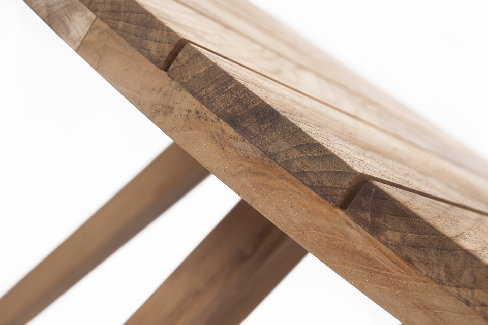 Compact table with contemporary style in solid teak.