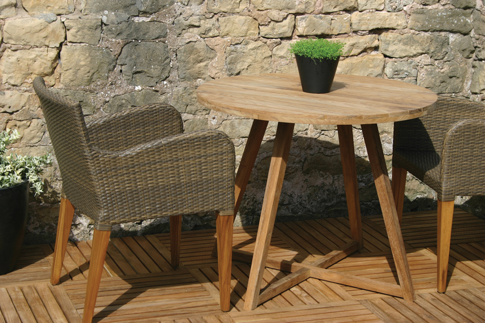 Manufactured from solid teak, the table will provide many years of service and can be left outdoors without need for regular maintenence, silvering over time.