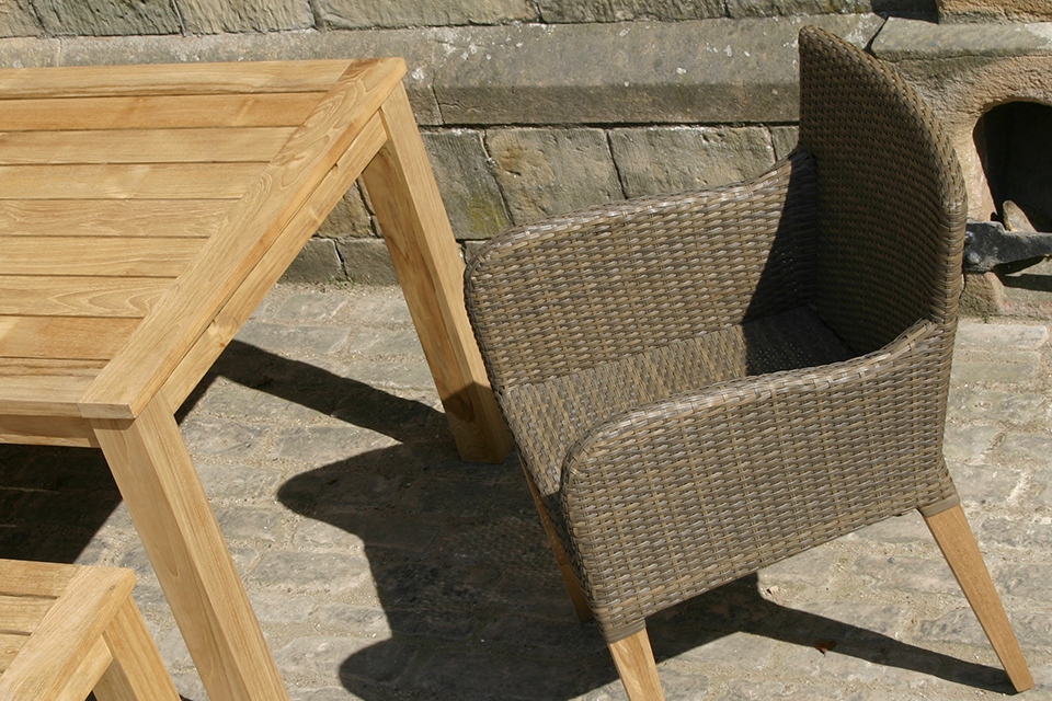 The classic design works really well with contemporary teak dining chairs, so keep an eye out around the site for the perfect partner! We like the Tripoli, which shares the same slatted teak seat core…
